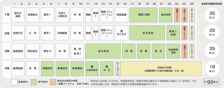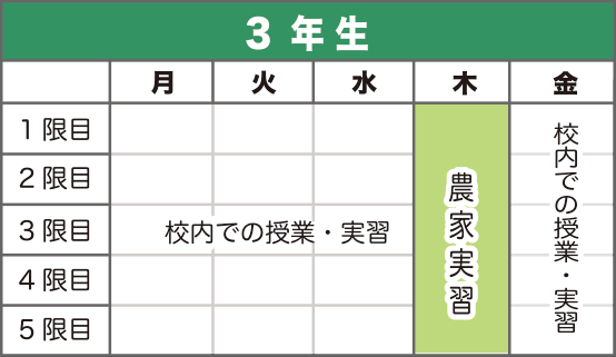 専門教科(農業)の学習を重視し、指導は実験実習を中心に進めています。2・3年生で は地元農家の方から学ぶ仕組みを取り入れるとともに、4年生からは農家での就労体験活動を取り入れ、仕事につながる学習を大切にしています。